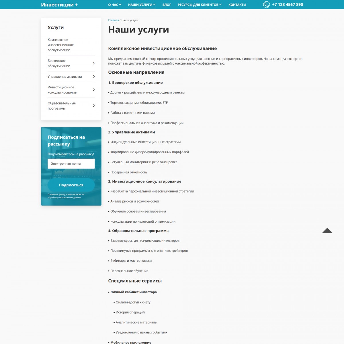 Шаблон создан для того, чтобы ваша инвестиционная компания выглядела профессионально и вызывала доверие у потенциальных клиентов. Все элементы дизайна направлены на создание образа надежного финансового партнера.