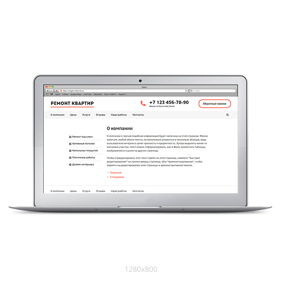 Адаптивный сайт по ремонту квартир или "муж на час" можно использовать под сайт практически любой тематики. Например: детский сад, рекламная компания, ремонт окон и дверей, застройщик, ремонт под ключ, аниматор и т.п.