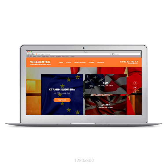 Адаптивный шаблон сайта агентства, оказывающего услуги оформления виз, загранпаспортов. Статичное фоновое изображение создает эффект многослойности сайта, текстовый основной слайдер, плавающее выпадающее меню, три баннера на главной странице, плавающий блок социальных сетей и слайдер в блоках отзывов, услуг и направлений деятельности - всё это позволяет использовать сайт для следующих направлений деятельности компаний: бухгалтерские услуги, агентство по подбору персонала, парикмахерский салон, фитнес центр и многое другое.