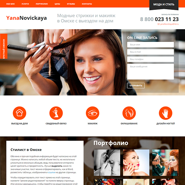 Стильный, яркий шаблон подойдет для компаний, деятельностью которых является оказание услуг: стилист, имиджмейкер, визажист, дизайнер, массажист, косметолог, тату, дом моды, салон красоты.