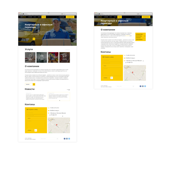 Большой яркий баннер и 4 баннера услуг, кнопка Обратного звонка, которую при необходимости легко можно переоформить в Заказ или Заявку, блок новостей, блок контактов с формой обратной связи – все это элементы оформления шаблона, гибкая система настроек которого позволяет в несколько кликов изменить внешний вид сайта