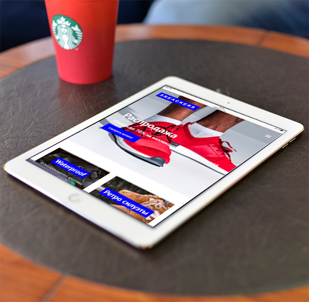 Шаблон магазина кросовок выполнен с использованием bootstrap.
