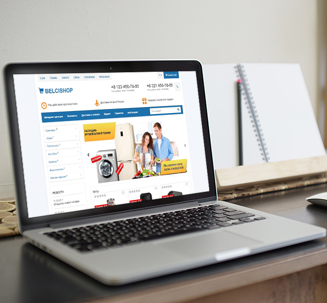 Адаптивный шаблон интернет магазина. Шаблон не имеет привязки к конкретной теме. Четыре меню, большой слайдер, блок иконок, новостей, подписки на рассылку, статьи, хиты продаж, акции, новинки, отзывы, производители - все это готово к использованию уже сейчас. Шаблон адаптирован для просмотра на любом устройстве: от смартфона до персонального компьютера. Функциональность интернет магазина реализована в полной мере: отложить, купить в один клик, оплата любым удобным способом, похожие товары, скидки, новинки, акции, старая цена, рейтинг, возможность поделиться информацией о товаре во всех соц.сетях, отзывы о товаре и многое другое.
