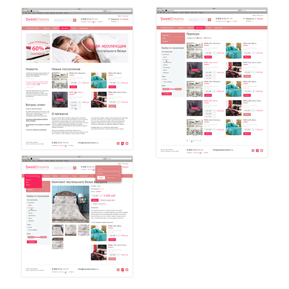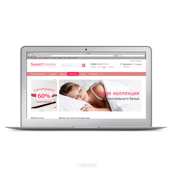 Нежный, светлый шаблон интернет магазина с вынесенными на передний план категориями товаров. Выпадающее меню позволяет углубить структуру магазина. Поиск товара по характеристикам, возможность отложить товар или купить в один клик, блок новинок товаров на главной странице, ненавязчиво структурированные блоки новостей, вопрос-ответа, простота замены баннеров, отдельный раздел Sale в горизонтальном меню, в котором размещаются все товары с отмеченной галкой "Акция" делают шаблон удобным и позволяют использовать на сайтах различной тематики, основу которых составляет интернет магазин.